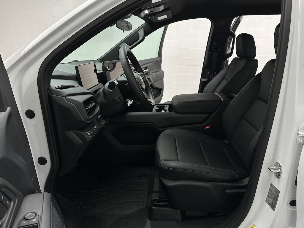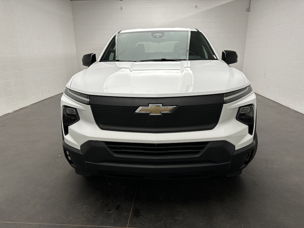 This is a brand new 2024 Chevrolet Silverado EV Work Truck Crew Cab Pickup that just arrived. It's finished in crisp Summit White with a Jet Black leatherette interior, creating a clean, professional look that's ideal for fleet use or any driver who demands durability with modern style.
