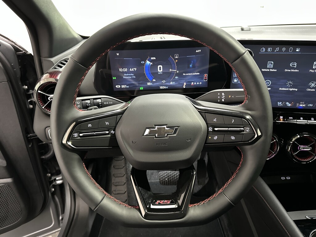The Blazer EV RS doesn't just look the part it's packed with thoughtful convenience too. Rain-sensing wipers, auto-dimming power-folding mirrors, a hands-free liftgate, multicolor ambient lighting, wireless phone charging, and a universal home remote all come standard. This one even includes the RS Convenience & Driver Confidence Package, bundling high-end upgrades like the head-up display, heated wiper park, heated rear seats, and the rear camera mirror.