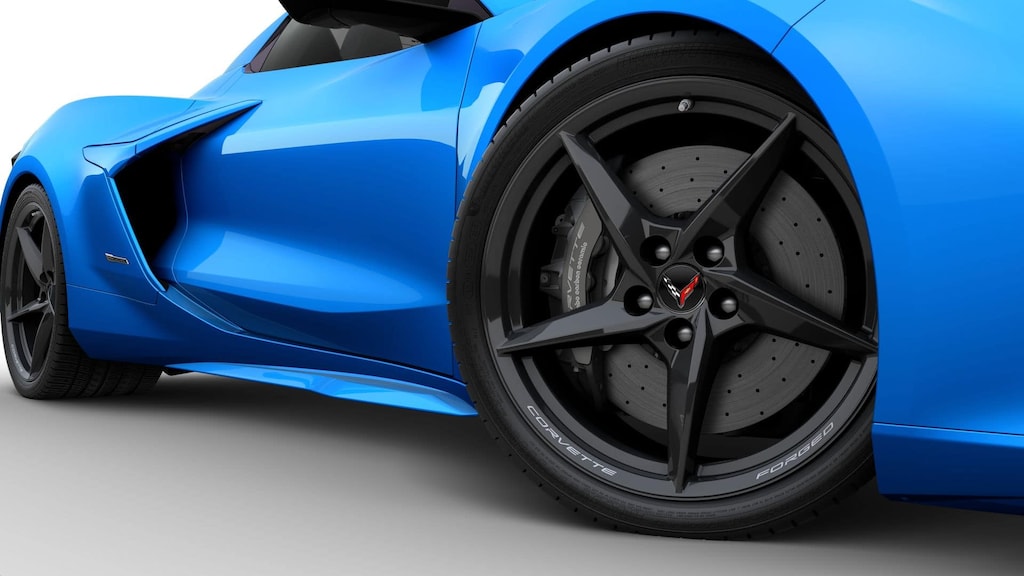 If you have been waiting for a Corvette that blends supercar performance with real-world confidence, this E-Ray is it. The electrified all-wheel drive system launches you forward with breathtaking grip, while Magnetic Selective Ride Control reads the road in milliseconds to keep the ride composed and razor sharp through every curve. Carbon ceramic brakes with dark gray calipers provide fade-free stopping power that feels as strong as it looks behind the gloss black forged aluminum wheels.