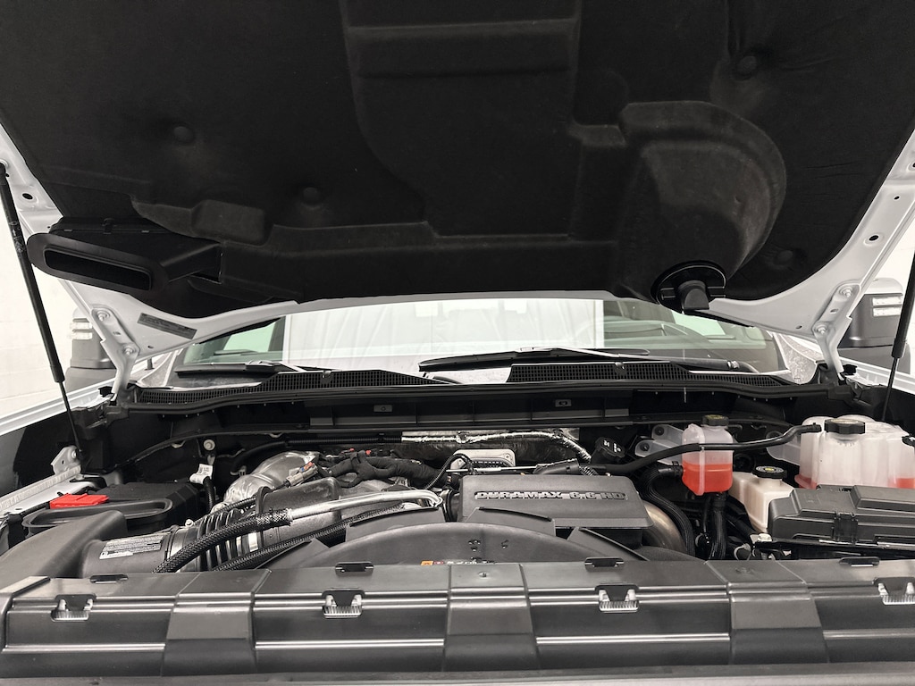 On the outside, the Silverado commands attention with chrome assist steps, animated LED headlights, fog lamps, and LED roof marker lights. A power up/down tailgate, power sliding rear window, spray-on bedliner, and integrated gooseneck/5th-wheel prep package make it a true workhorse. With a 12,250 lb GVWR and 3.42 rear axle ratio, itâs engineered to tow with precision and stability, guided by integrated trailer brake controls and hitch guidance technology.