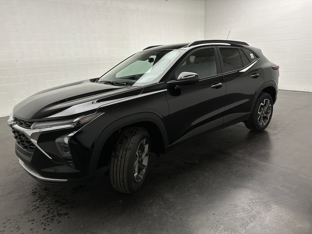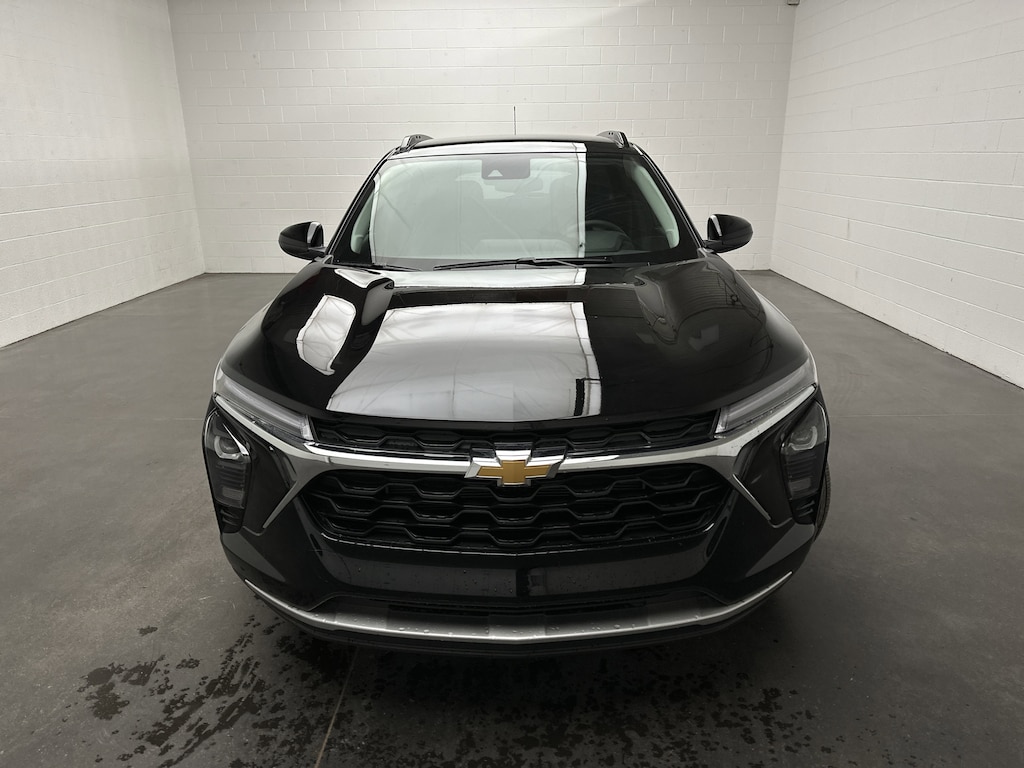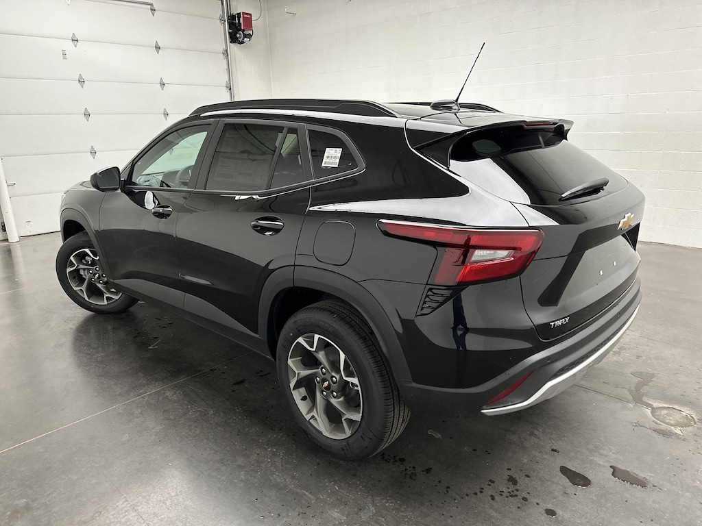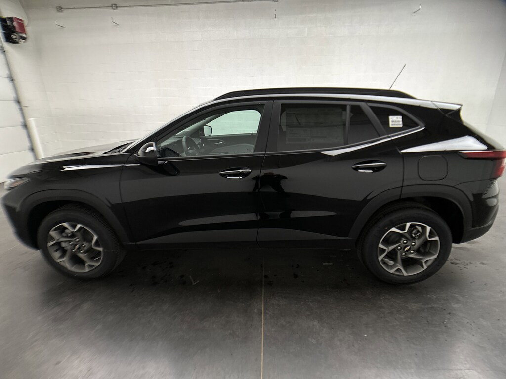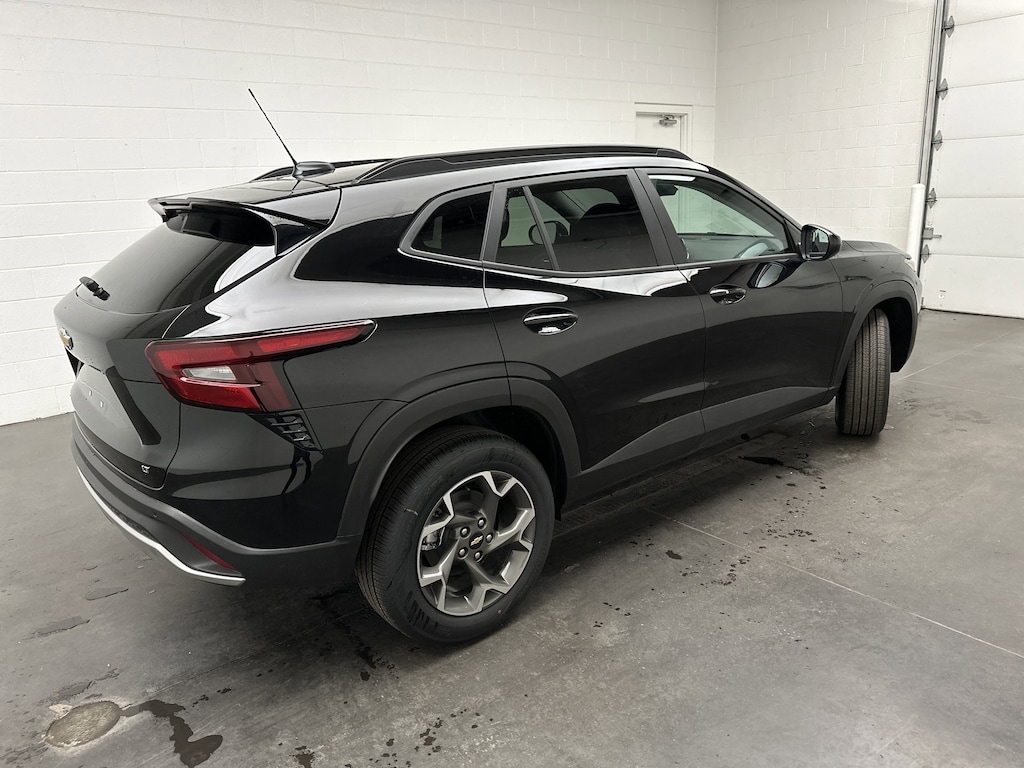 This is a brand new 2026 Chevrolet Trax LT SUV - it is finished in Mosaic Black Metallic, with a Jet Black interior with Blue accents.