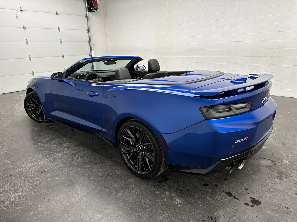 We've just taken in a 2018 Chevrolet Camaro ZL1 Convertible - it's finished in eye-catching Hyper Blue Metallic, with a Jet Black interior accented by bold red details and performance-focused materials. With just 7,511 miles, this ZL1 is powered by a supercharged 6.2L V8 running on gasoline, paired with a 6-speed manual transmission and rear-wheel drive for a pure, driver-first experience. EPA ratings come in at 14 MPG city and 20 MPG highway.