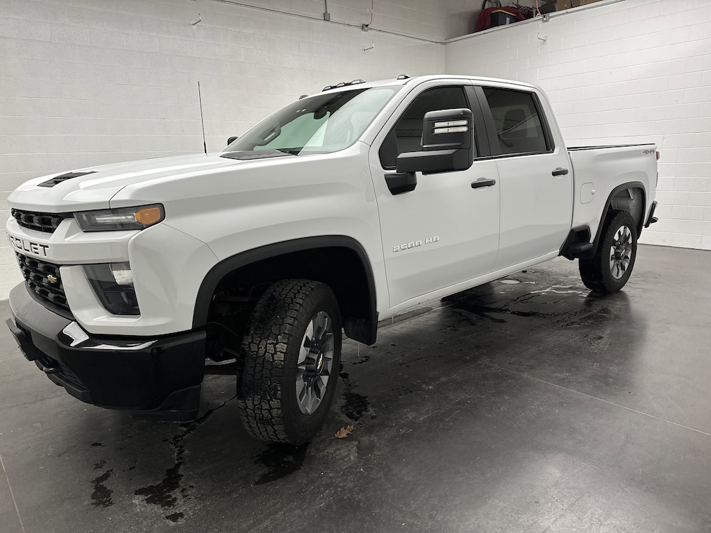 We've just taken in a 2022 Chevrolet Silverado 2500HD Custom Crew Cab Pickup - it's finished in Summit White, with a Jet Black Cloth interior. This heavy-duty truck shows JUST 42,253 miles and is powered by a gas 6.6L V8 paired with a 6-speed automatic transmission and 4WD, giving you serious muscle and confidence whether you're pulling a trailer, plowing snow, or tackling tough job sites.