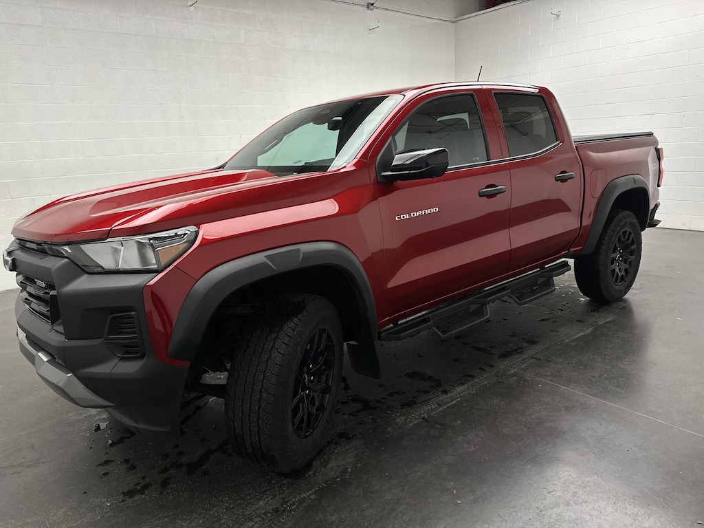 We've just taken in a 2023 Chevrolet Colorado 4WD Trail Boss Crew Cab Pickup - it's finished in Radiant Red Tintcoat, with Jet Black cloth seats. It has only 14,056 miles, and it runs the impressive 2.7L Turbo Plus engine with 310 hp and 391 lb-ft of torque, paired with an 8-speed automatic transmission and 4WD. This one-owner truck is in Very Good condition and still covered by the remaining factory bumper-to-bumper warranty.