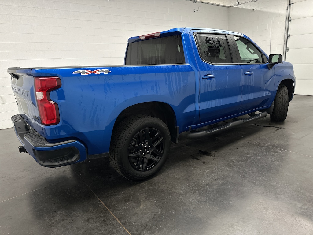We've just taken in a 2023 Chevrolet Silverado 1500 RST Crew Cab Pickup - it's finished in Glacier Blue Metallic, with a Jet Black Cloth interior. This Silverado shows 82,174 miles and is powered by a 5.3L EcoTec3 V8 running on gasoline, paired with a smooth 10-speed automatic transmission with paddle shifters. It features 4WD for confident traction in all seasons and delivers an EPA-estimated 16 MPG city and 20 MPG highway.