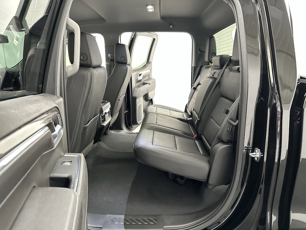 This truck also shines when it comes to everyday convenience. Remote start, keyless open and start, rain-sensing wipers, and a power up/down tailgate make day-to-day tasks feel effortless. The Crew Cab layout offers generous rear legroom, plus under-seat and seatback storage so you can keep gear organized and out of sight. Bed lighting, 12 fixed cargo tie-downs, and a 120V bed-mounted outlet make the Silverado a trustworthy partner for work or weekends, while the chrome accents, LED lighting signatures, and 20-inch Sterling Silver wheels give it a strong, polished presence on the road.
