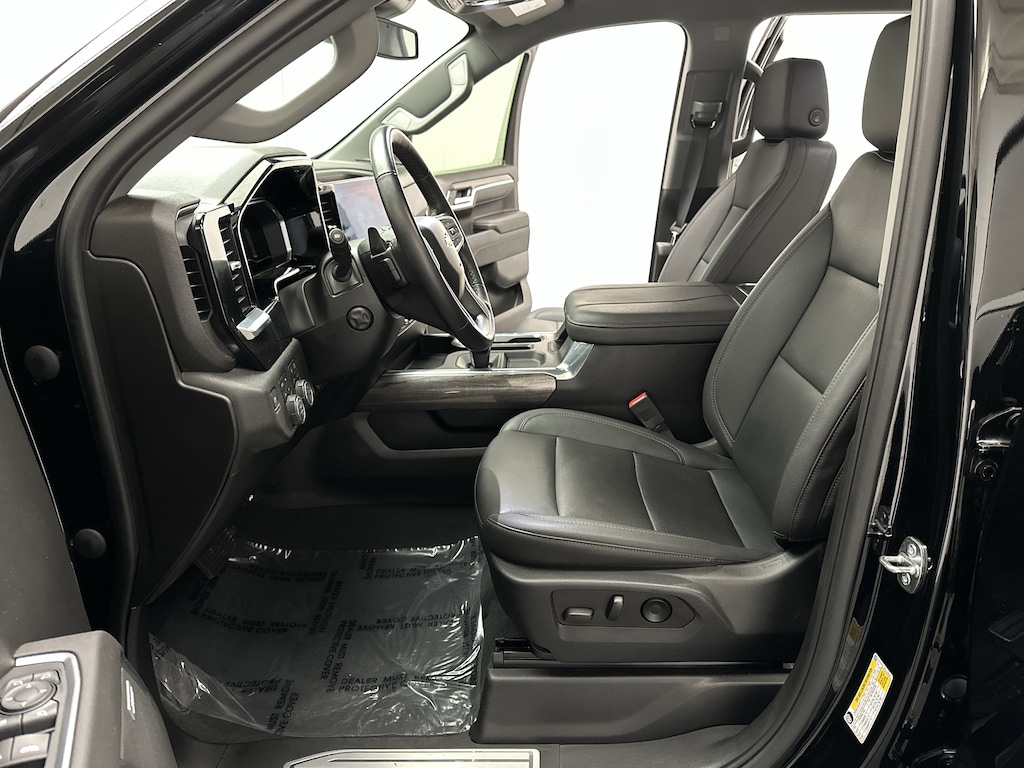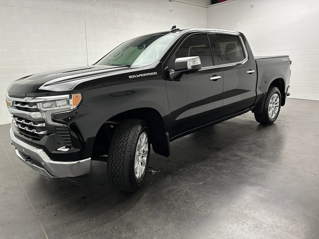 We've just taken in a 2023 Chevrolet Silverado 1500 LTZ Crew Cab Pickup - it's finished in Black, with a Jet Black leather interior. With only 11,914 miles, a 6.2L V8 under the hood, a 10-speed automatic transmission with paddle shifters, and confident 4WD capability, this one-owner LTZ is an exceptional find backed by remaining factory bumper-to-bumper warranty.