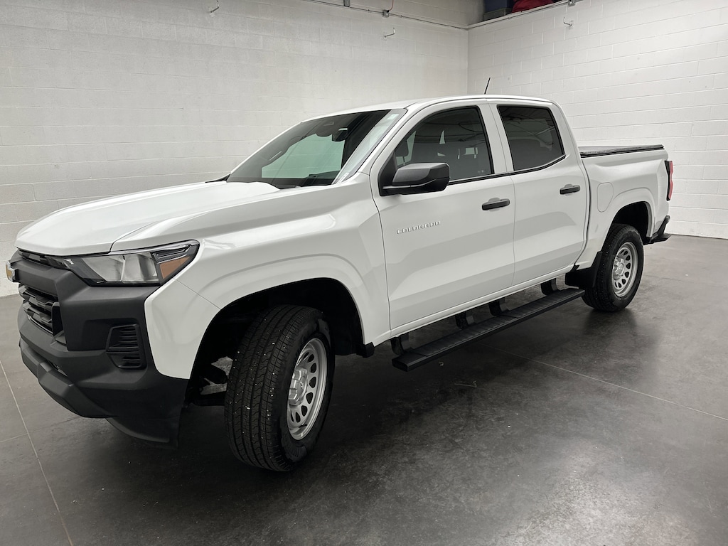 We've just taken in a 2024 Chevrolet Colorado 2WD Work Truck Crew Cab Pickup - It is finished in Summit White, with a Jet Black cloth interior. With JUST 8,045 miles on the odometer, this rear wheel drive Colorado is powered by a Turbocharged 2.7L Gas I4 engine paired with a smooth-shifting 8-Speed Automatic transmission. It delivers up to 25 MPG highway and 20 MPG city, giving you the strength of a truck without draining your fuel budget.