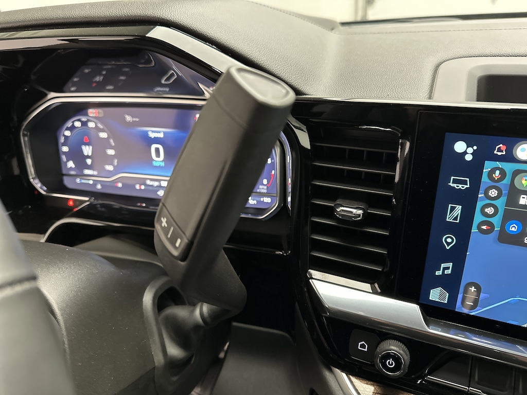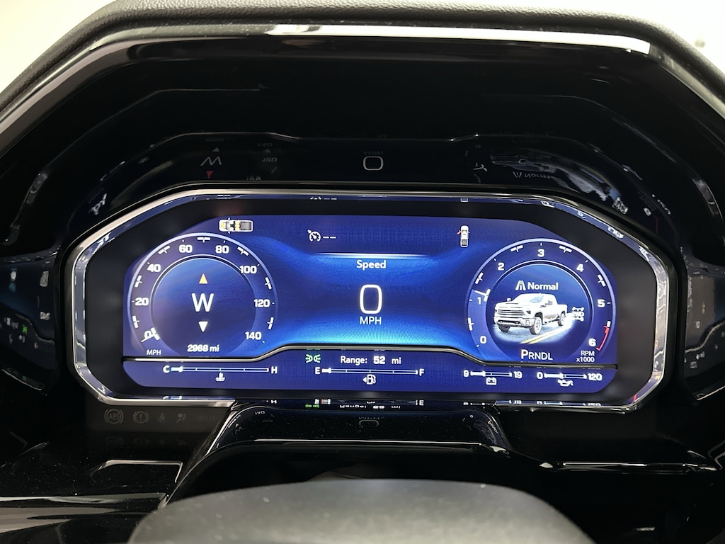 Slide into the driver's seat and you immediately feel the strength and composure of this heavy-duty truck. The seating position is tall and commanding, giving you a clear view of the road and anything in your path. The cabin blends comfort with purpose: dual-zone climate control keeps temperatures just right, the heated front seats and heated steering wheel cut through cold Ohio mornings, and the soft glow of the 13.4-inch infotainment screen anchors the interior with modern clarity.