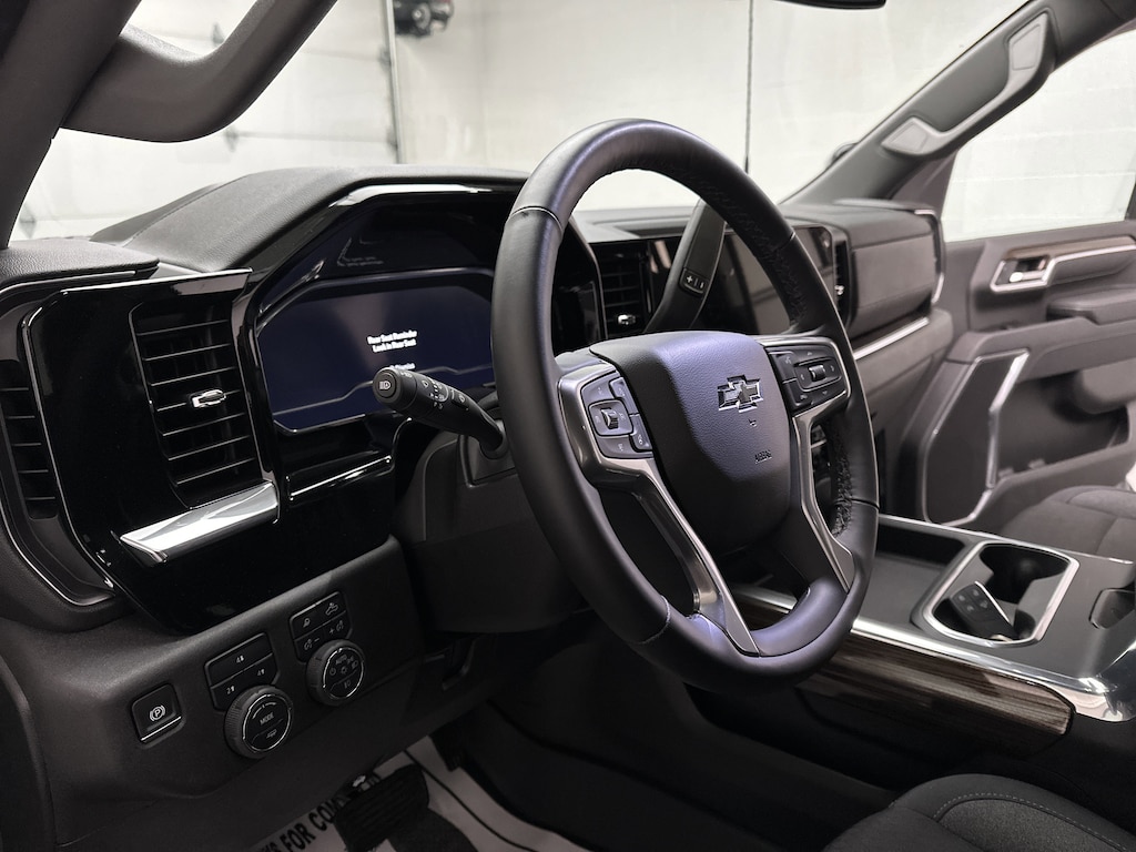 The exterior is bold and modern, with the Trail Boss blacked-out accents, high-gloss black wheels, smoked amber roof marker lamps, and power-extending trailering mirrors with puddle lighting. It looks tough, and it backs every bit of that up. Inside and out, this is a truck designed to work hard, look sharp, and keep you comfortable all day long.
