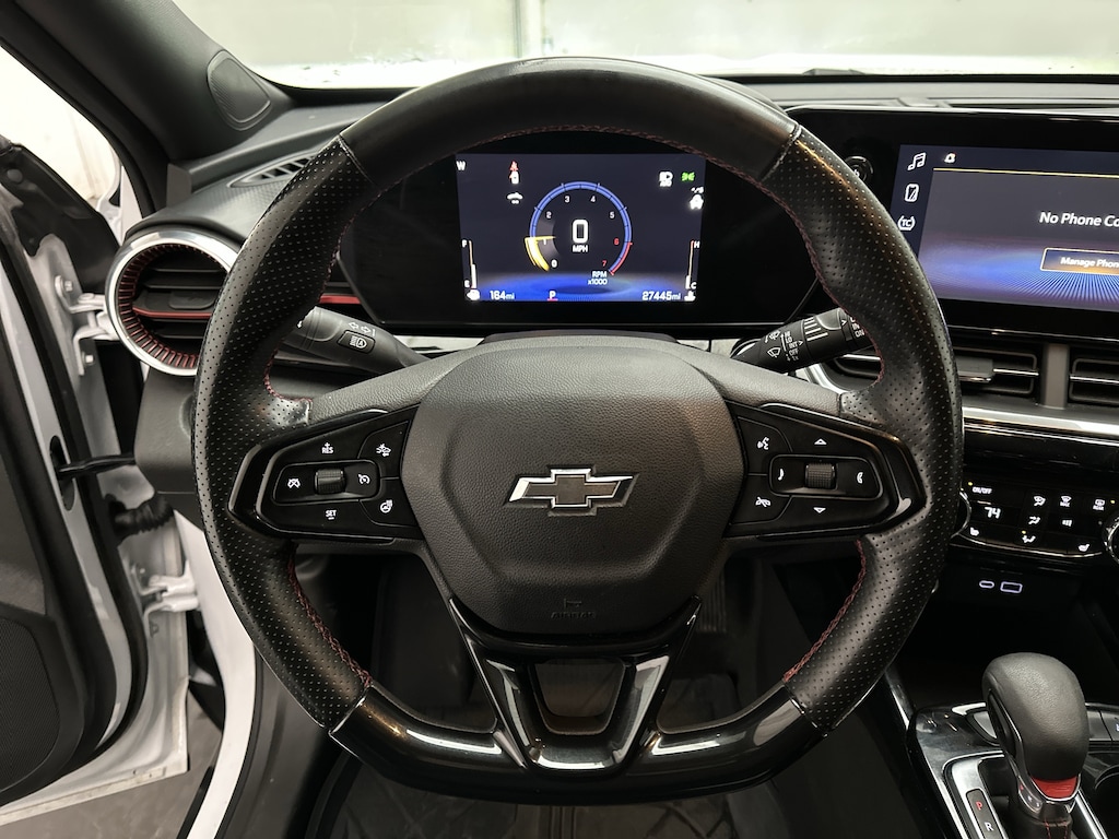 We've just taken in a 2025 Chevrolet Trax 2RS SUV - it's finished in Summit White, with a Jet Black with Red accents Leatherette interior. This Trax currently shows JUST 27,447 miles and is powered by a turbocharged 1.2L 3-cylinder gasoline engine paired with a smooth 6-speed automatic transmission and front-wheel drive, delivering an impressive 28 MPG city and 32 MPG highway.