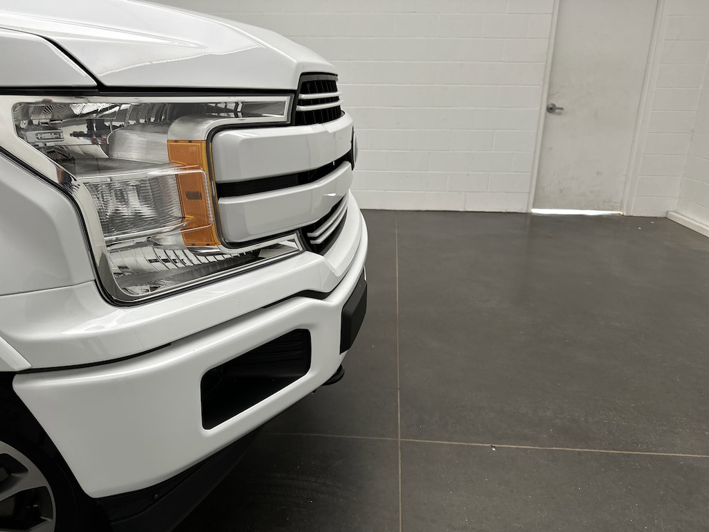 Outside, 18-inch machined-aluminum wheels, a chrome grille and bumpers, black running boards, hard tonneau cover, and crisp Oxford White paint give this F-150 an upscale, ready-for-anything stance. All-terrain tires, tow hooks and the Class IV receiver say itâs as capable as it looks.