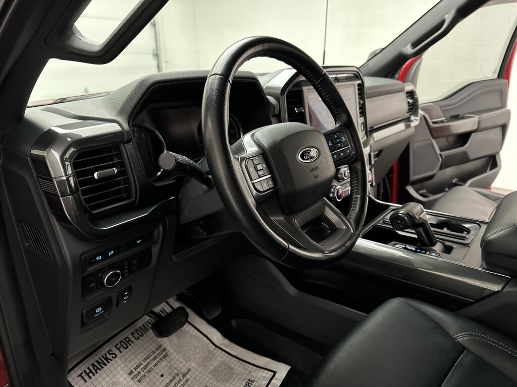 Weâve just taken in a 2022 Ford F-150 Crew Cab Pickup - itâs finished in bold Rapid Red Metallic, paired with a Black leather interior that instantly elevates the look and feel of this truck. This beauty sits on 20" black wheels and comes with black assist steps, a power sliding rear window, and a spray-on bed liner.
