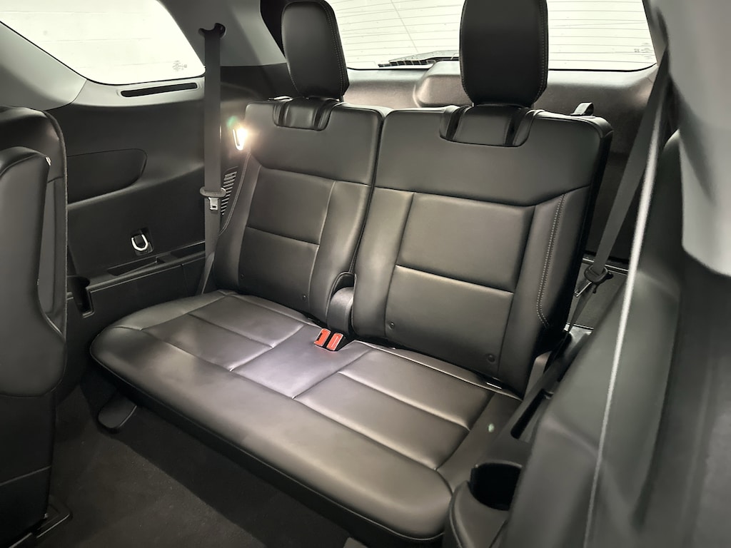 Inside, the cabin feels thoughtfully designed and comfortable. The heated front seats provide welcome warmth on cold mornings, while the tri-zone climate control keeps everyone comfortable across all three rows. Second-row captain's chairs make it easy for passengers to settle in, and the third row folds flat when you need extra cargo space for groceries, sports gear, or weekend road trips. The power liftgate adds everyday convenience, especially when your hands are full.