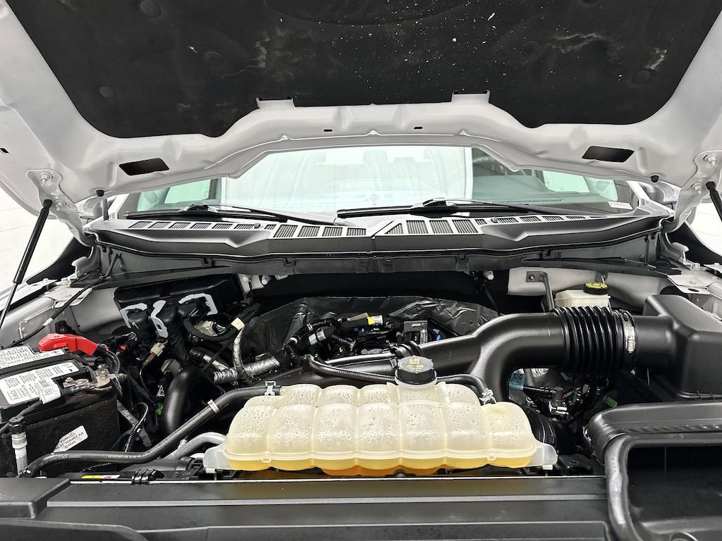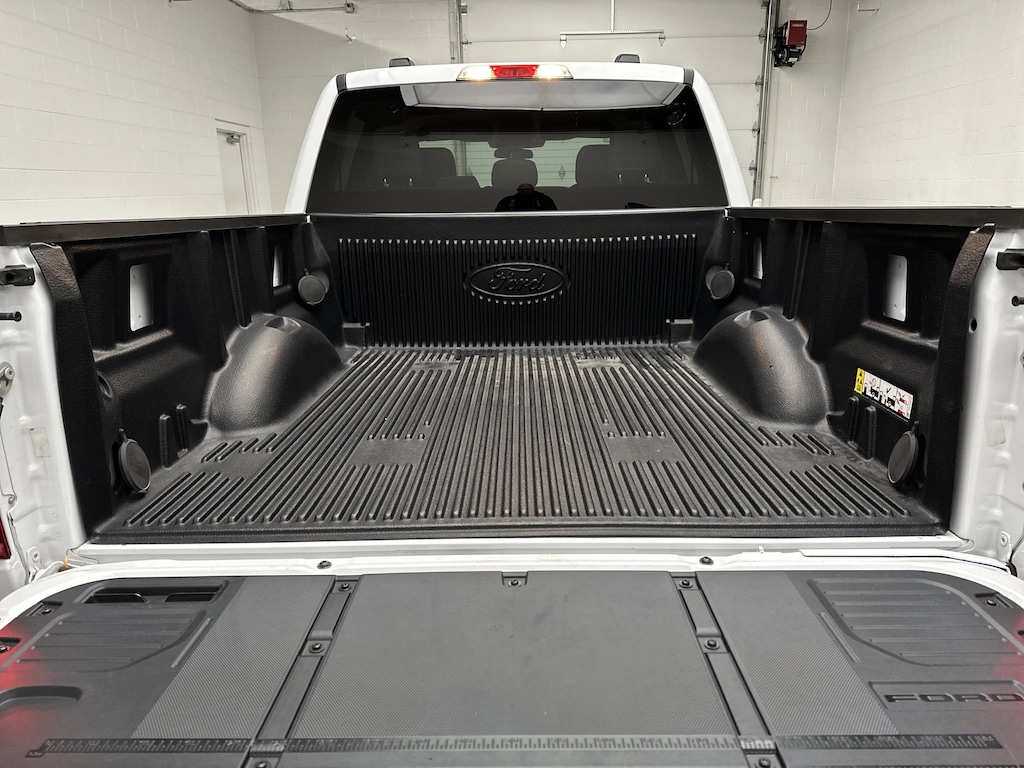 Outside, this F-150 looks every bit the capable truck it is. Black platform running boards make getting in and out easy, fog lamps and automatic high beams improve visibility, and the Class IV trailer hitch with integrated guidance makes towing straightforward. The bed is ready for work or weekend projects, complete with a bed liner, cargo lighting, and tailgate assist.