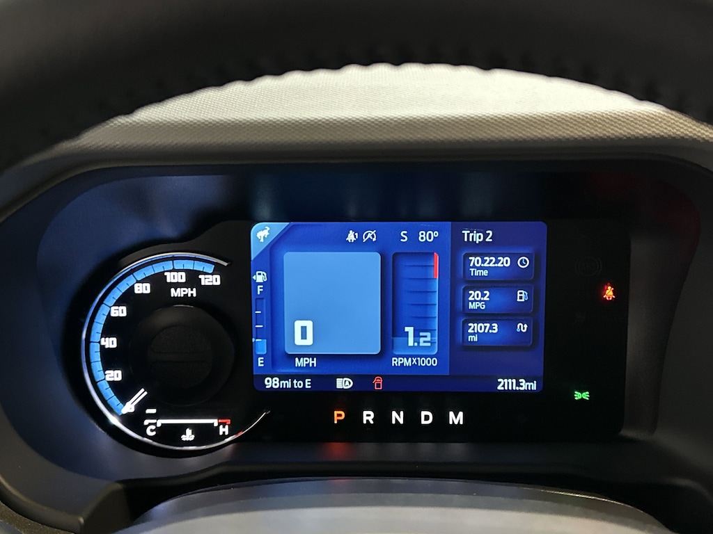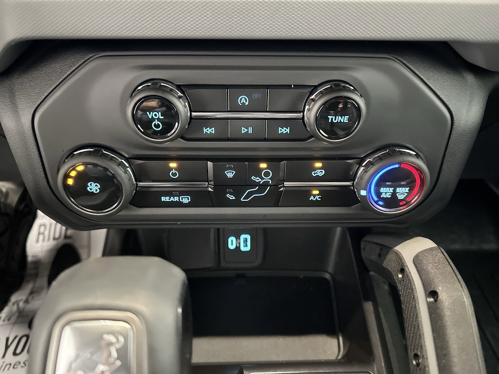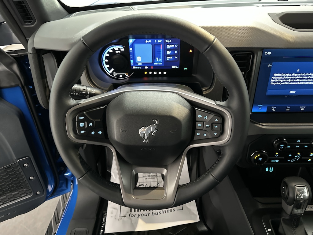 Inside, the Bronco combines rugged functionality with smart technology. The 12-inch SYNC 4 touchscreen brings your world to life with wireless Apple CarPlay, Android Auto, and voice command connectivity. A premium 7-speaker sound system with a subwoofer keeps your playlists crisp and clear, even with the roof off.