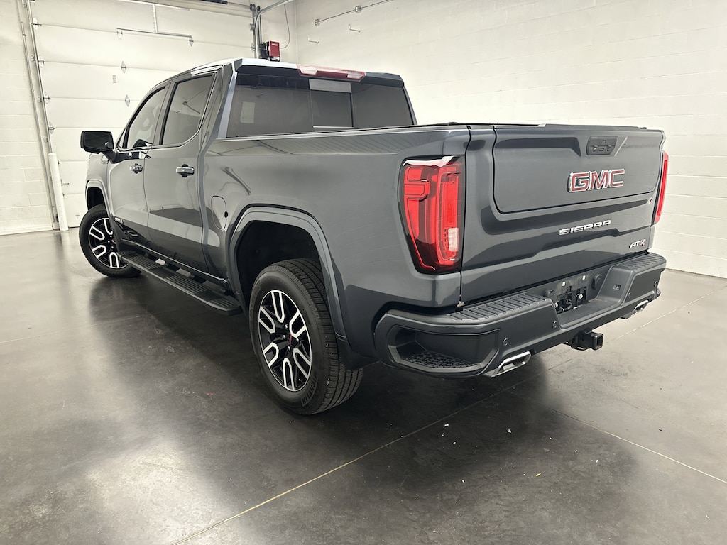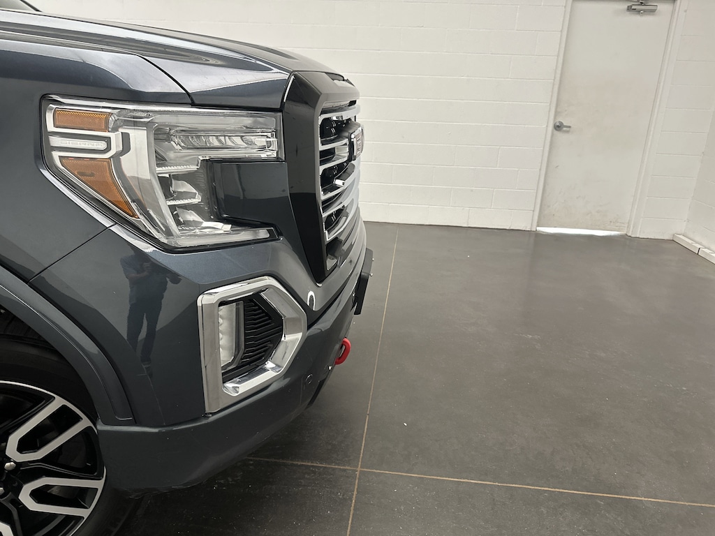 Utility meets innovation in the truck bed. The spray-on bedliner shrugs off heavy use, LED cargo box lighting keeps gear visible at night, and the MultiPro tailgateâs six functions transform into a step, a workbench, or a load stop as needed. CornerStep rear bumpers, a 120-volt bed-mounted outlet, wheelhouse liners, and integrated tie-downs all make this Sierra ready for real work and real play. Up front, LED reflector headlamps, signature daytime running lights, and body-color bumpers complete its athletic stance.