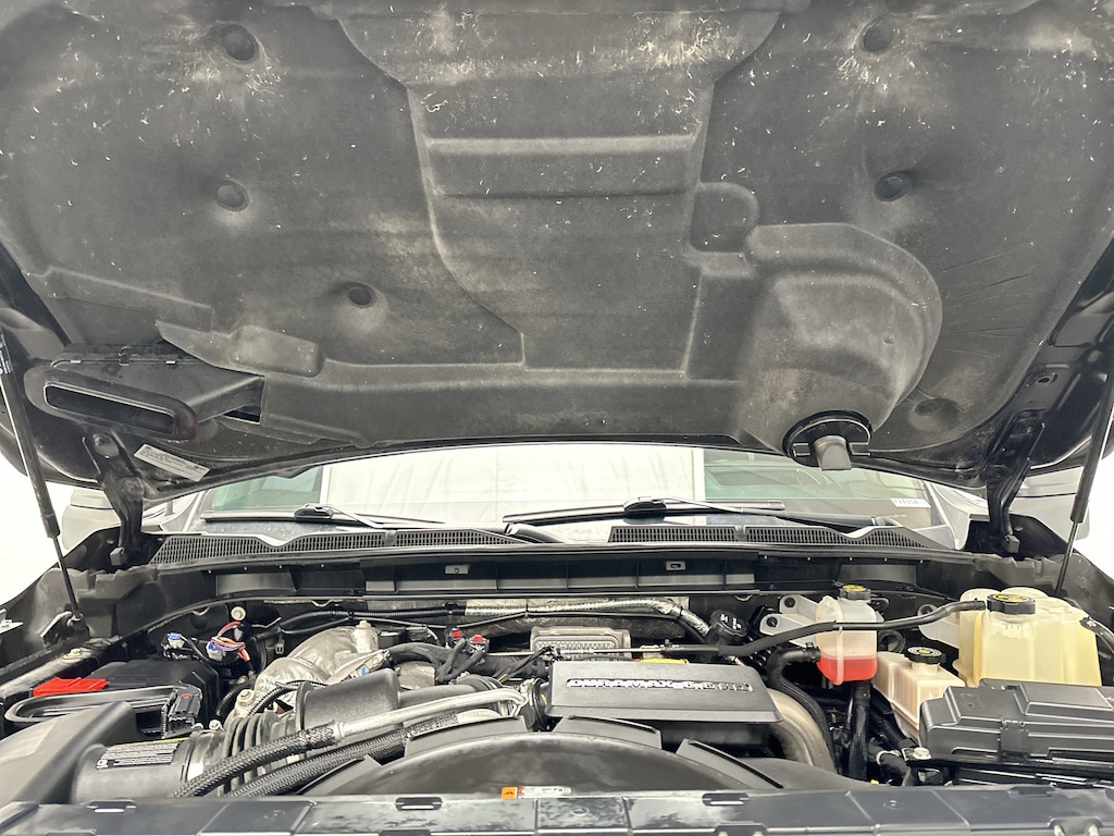 On the outside, the Onyx Black paint paired with 20-inch polished aluminum wheels gives this heavy-duty truck a bold, upscale look. The MultiPro tailgate makes loading and accessing the bed easier, while the spray-in bedliner, LED cargo lighting, and corner steps make everyday use more convenient. Factory chrome assist steps, trailering mirrors, skid plates, the Snow Plow Prep/Camper Package, and the high-idle switch add readiness for demanding work or harsh weather.