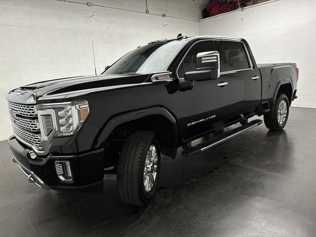 We've just taken in a 2022 GMC Sierra 2500HD Denali Crew Cab Pickup. It is finished in Onyx Black with a Jet Black perforated leather interior. It currently has 131,788 miles and runs the legendary 6.6L Duramax Turbo-Diesel V8 paired with the Allison 10-speed automatic transmission and a confident 4WD system. This truck carries a Good condition rating, and has a clean accident history and in spite of its age and mileage, is ready to go on a new adventure.