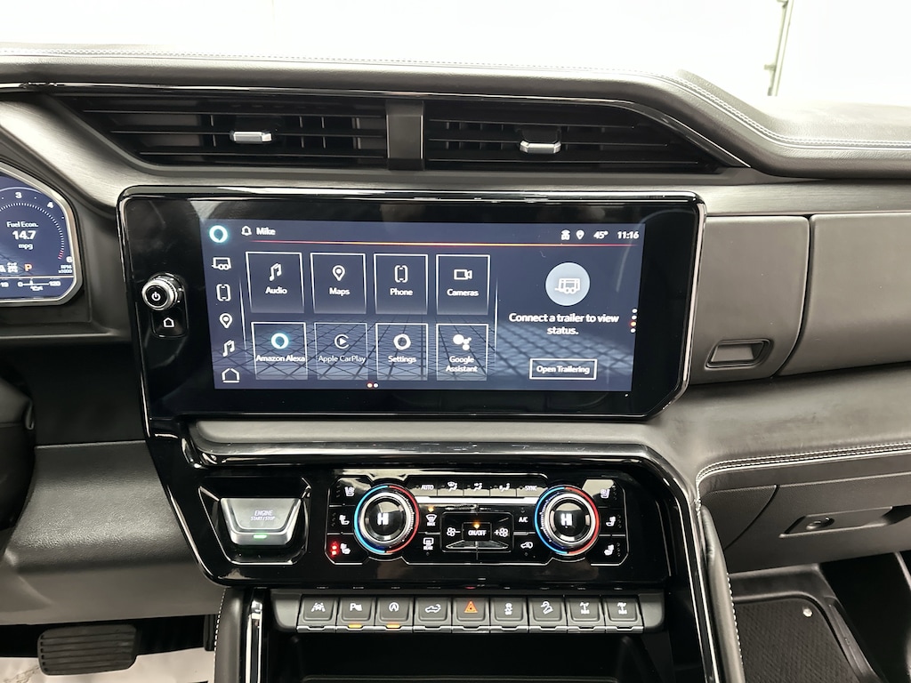 Technology is front and center with a massive 13.4-inch GMC Premium Infotainment touchscreen featuring built-in Google apps, navigation, Apple CarPlay, Android Auto, Bluetooth, and Wi-Fi hotspot. The Bose Premium 12-speaker system with Richbass woofer creates a concert-like sound experience. A 15-inch Head-Up Display and 12.3-inch driver information cluster keep key info in view, while wireless charging and multiple USB/120V outlets keep devices powered.
