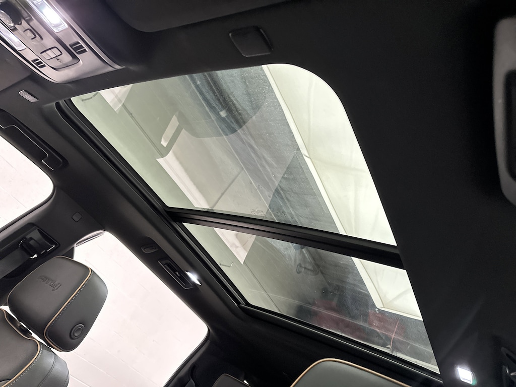The panoramic dual pane sunroof brightens the entire cabin, giving front and rear passengers an open air feel. When the weather turns, rain sensing wipers adjust automatically and LED headlights and fog lamps cut through dark or foggy conditions with crisp clarity. Power retractable running boards with perimeter lighting create a welcoming entry at night and add a premium touch every time you walk up to the vehicle. A hands free power liftgate makes loading groceries, luggage, or sports gear simple when your hands are full.