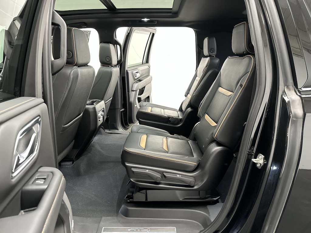 The Yukon XL AT4 is built for families and adventurers who want true capability without giving up comfort or refinement. Sitting behind the wheel feels commanding and secure, with the tall stance, magnetic ride control, and active suspension smoothing out rough backroads and keeping the big SUV composed even when the pavement ends. The 5.3L V8 delivers easy, confident power on highways, towing trails, or steep country hills, while the 2-speed transfer case, hill descent control, skid plates, and all terrain tires help you feel steady and in control on uneven terrain.