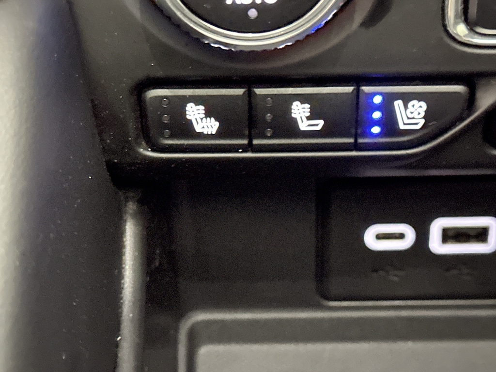 Inside, the XL cabin opens up with a spacious, premium feel. The perforated leather seats offer heated and ventilated comfort up front and heated second row seats, giving you cozy warmth on winter mornings or cool relief on hot summer drives. The heated steering wheel makes every cold start gentler, and memory settings for the driver make it simple to hop in and go. Second row captain's chairs give passengers stretch out room, and the power release design makes third row access smoother. When you need cargo space, the power folding third row drops flat at the touch of a button, giving you the flexibility to load up for long trips or gear heavy weekends.
