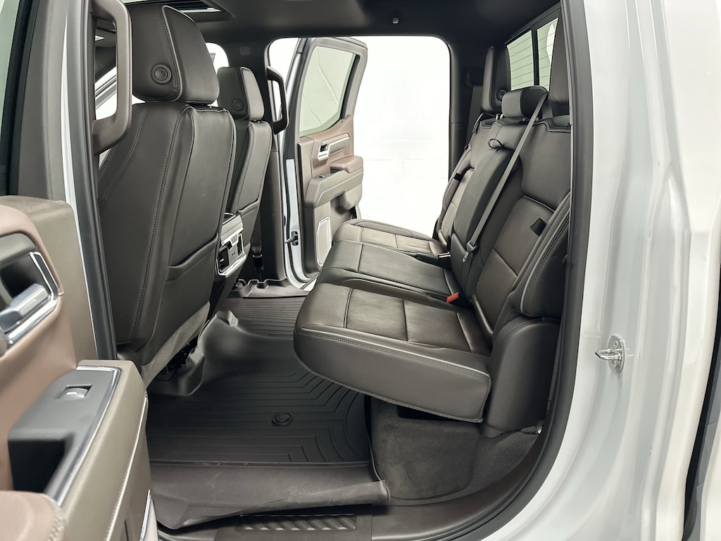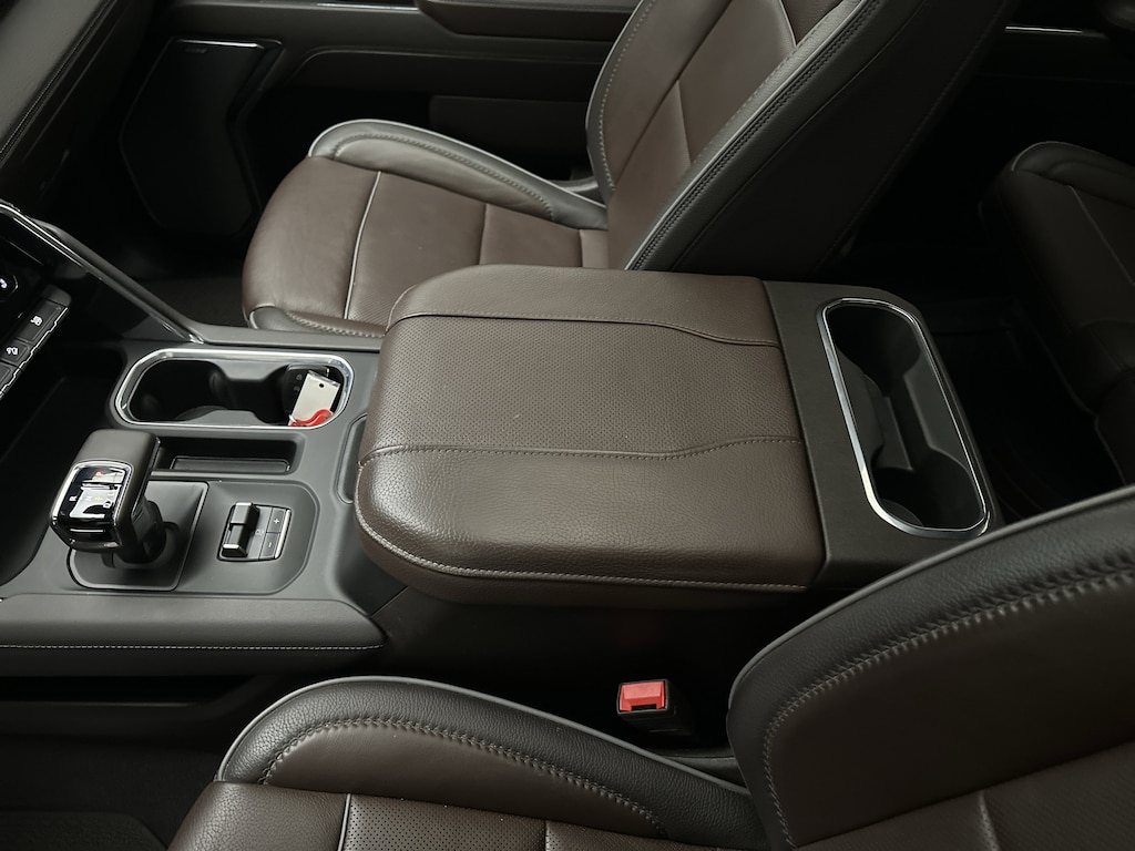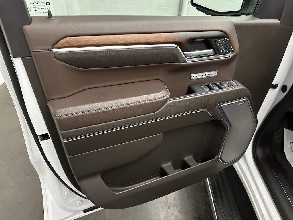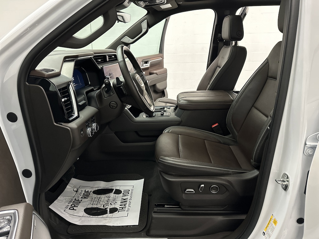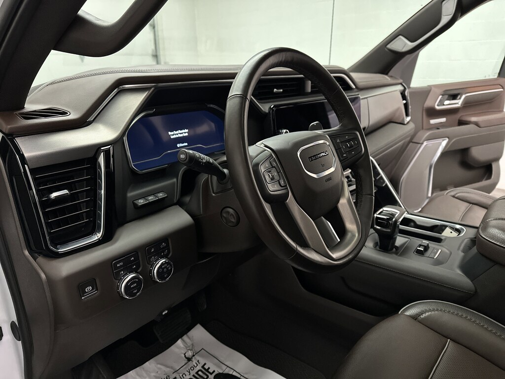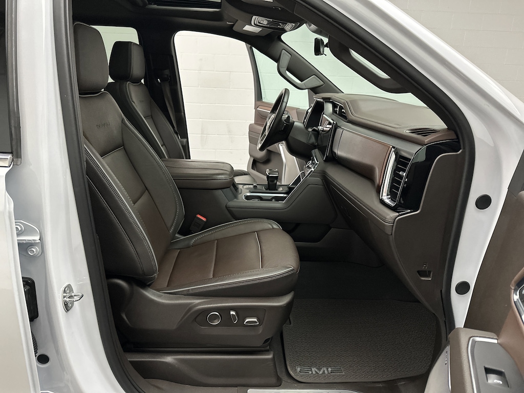 The Sierra Denali isnât just a truck itâs an experience. From the moment you step inside, the cabin welcomes you with premium materials, precision stitching, and an unmistakable sense of craftsmanship. The Atmosphere/Brownstone color palette gives off an upscale yet warm tone, while the Denali-exclusive leather seats are both heated and ventilated up front, with heated outboard rear seats to keep everyone comfortable year-round. A heated steering wheel, power-adjustable steering column, and driver memory settings make every drive feel personally tailored.
