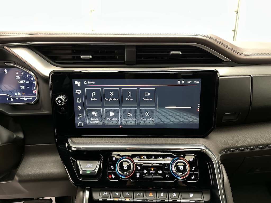 The cabin technology in this Sierra Denali is every bit as impressive as its powertrain. The 13.4-inch premium GMC infotainment touchscreen with Google built-in, wireless Android Auto and Apple CarPlay, and a crisp Bose Premium Sound System make every trip more enjoyable. The 15-inch multicolor Head-Up Display projects key information directly onto the windshield, while the Rear Camera Mirror and HD Surround Vision provide a panoramic view around the truck.