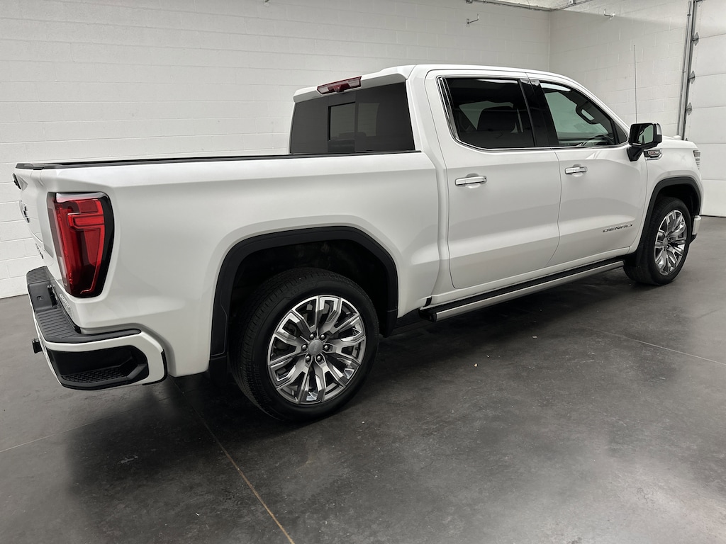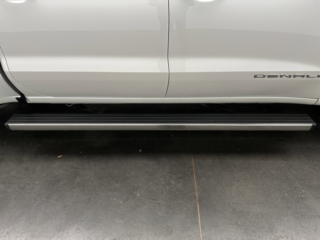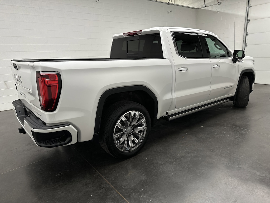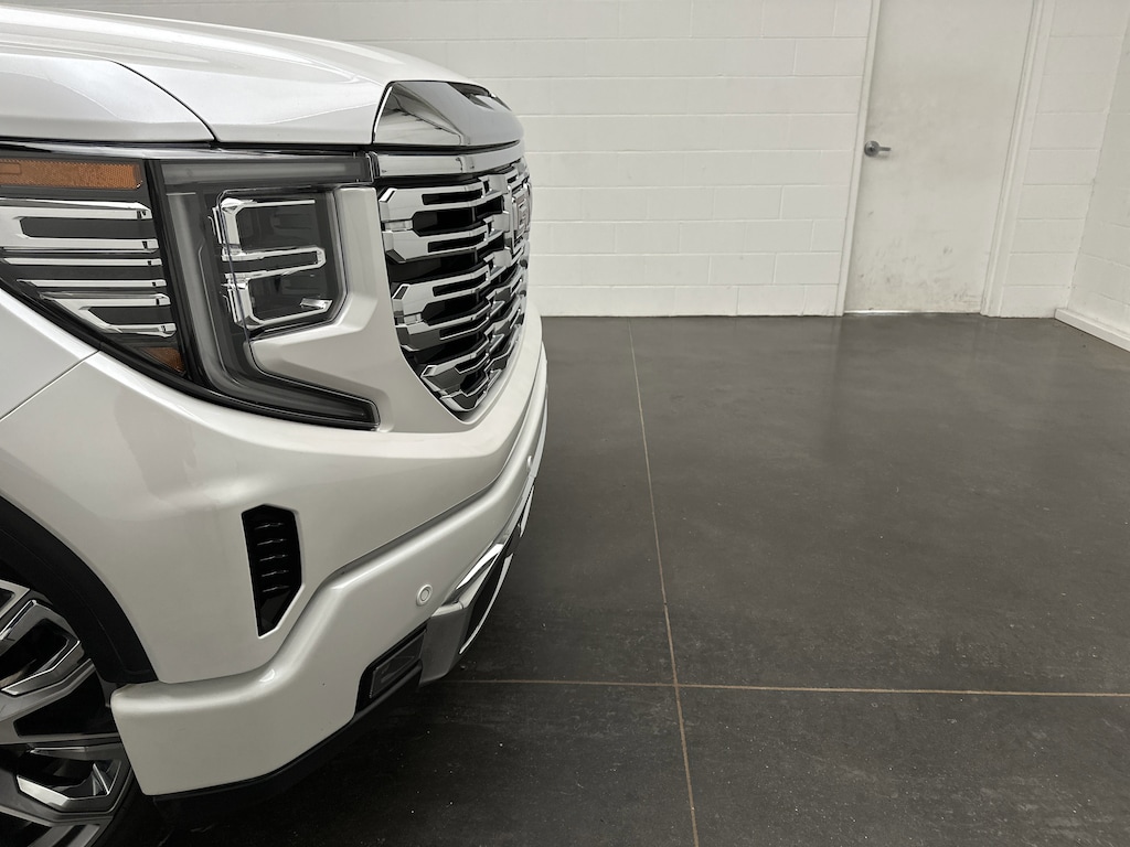 On the outside, this Sierra Denali commands attention. The signature chrome Denali grille and 22-inch bright machined aluminum wheels give it an unmistakable presence. The power sunroof opens up the cabin to fresh air and sunlight, while the GMC MultiPro Power Steps and innovative MultiPro Tailgate make loading, unloading, and bed access effortless. LED headlights and fog lamps cut through the night, while the spray-on bedliner and the power tailgate lock keep your cargo secure and protected.
