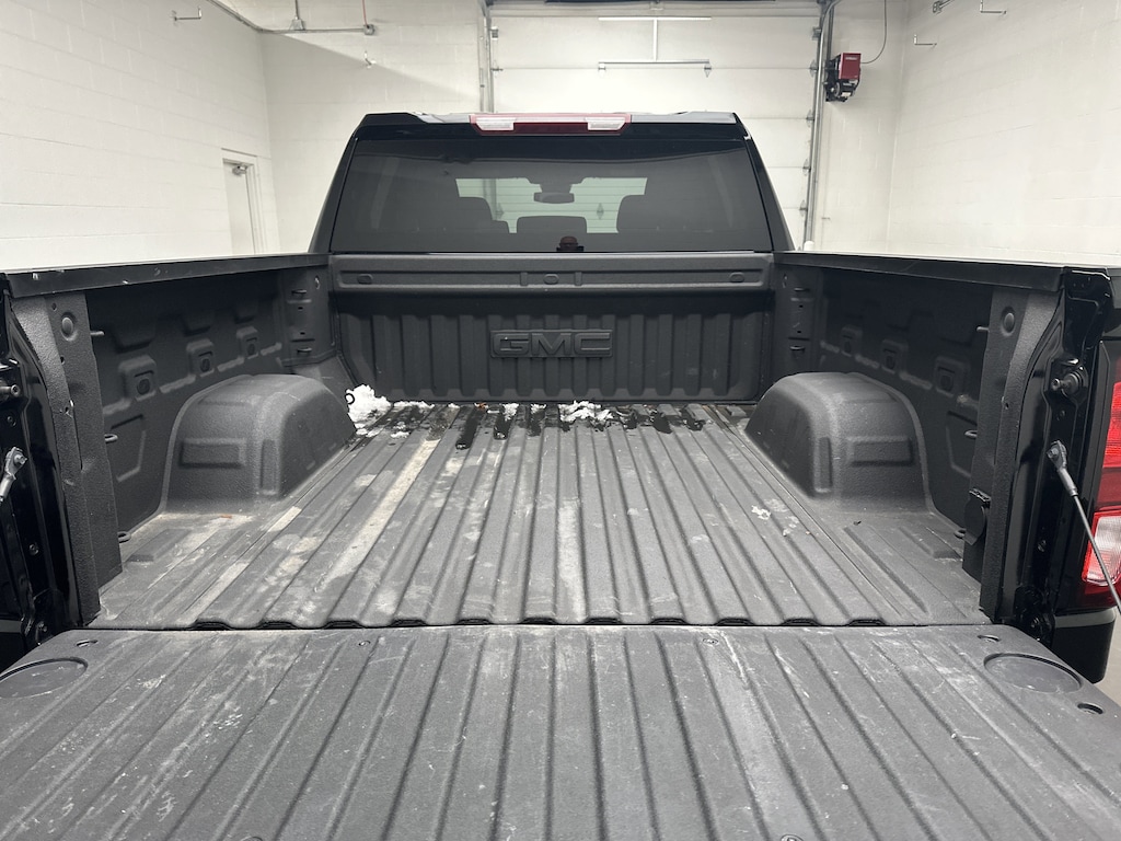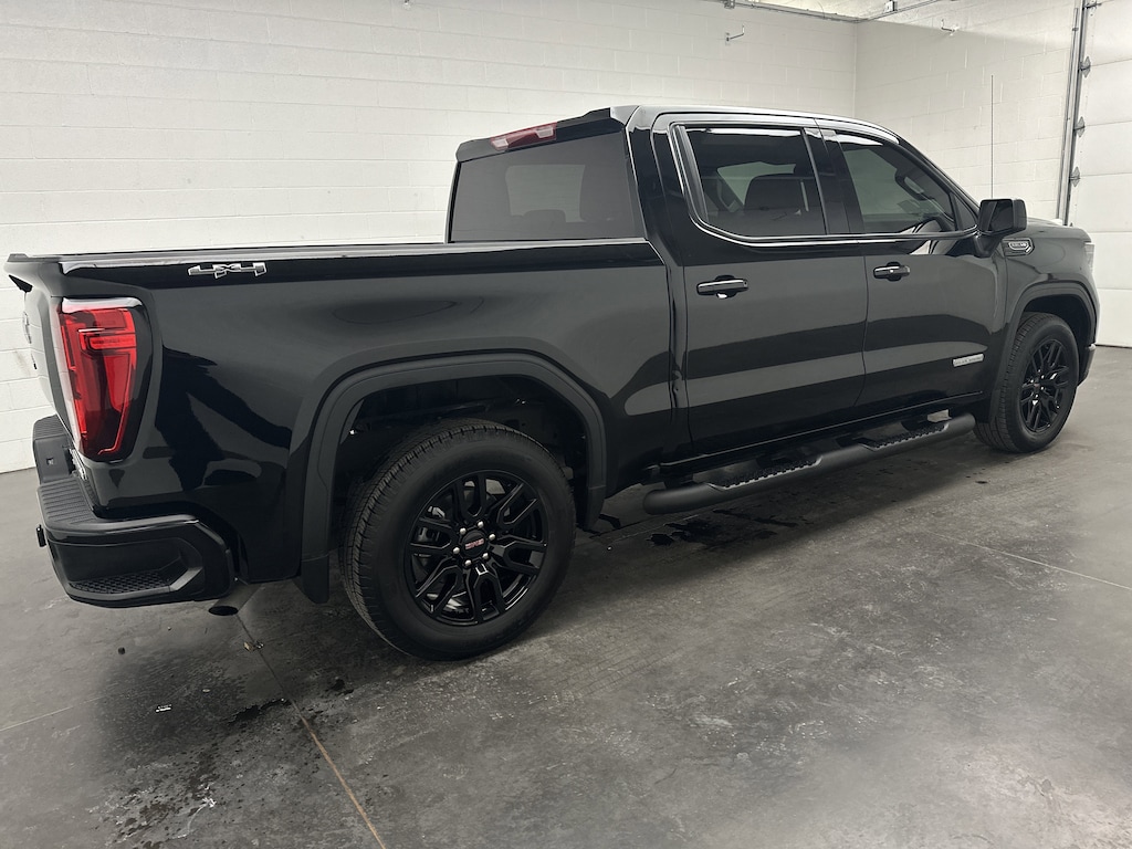 On the outside, the Elevation trim gives this Sierra a strong, aggressive look with 20-inch high-gloss black wheels, black tube steps, body-color bumpers, LED headlights and fog lamps, and deep-tinted glass.