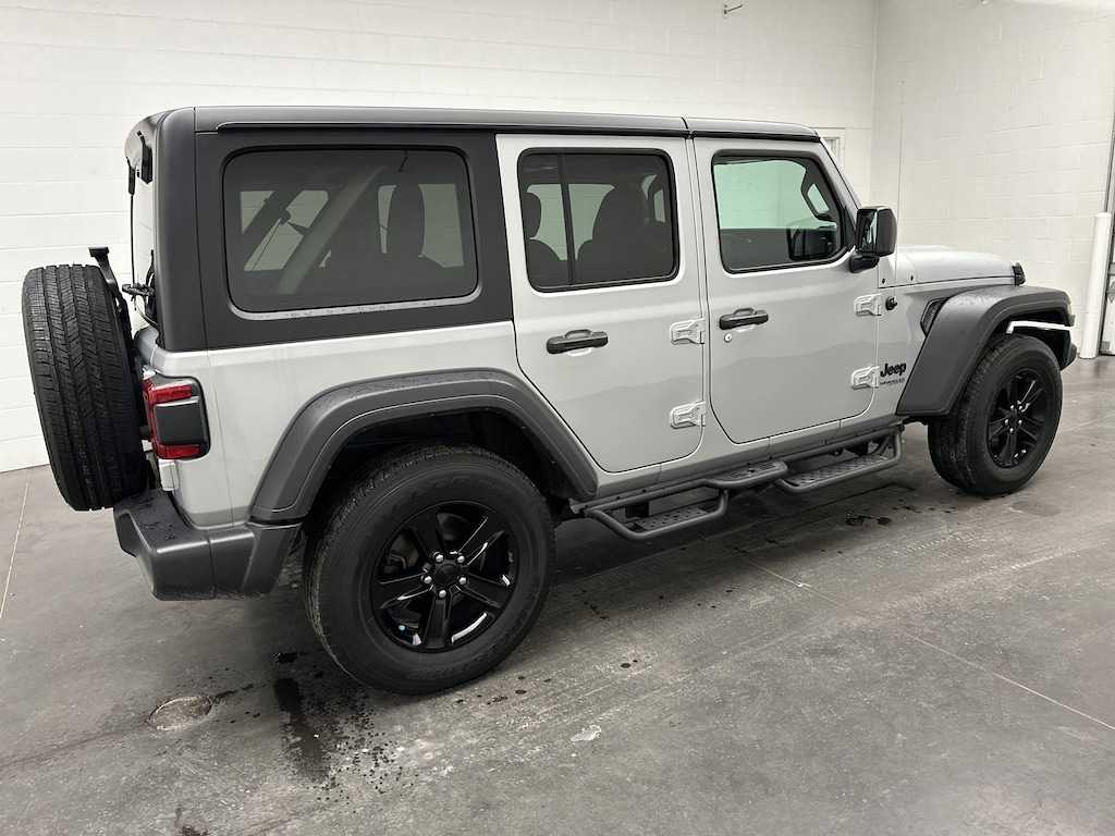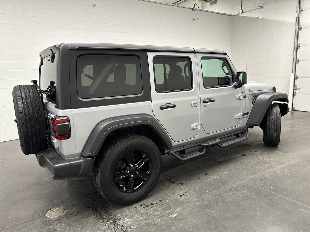 We have on our lot a REALLY SHARP 2022 Jeep Wrangler Unlimited Sport Altitude SUV - it's finished in Silver Zynith Clearcoat, with a Black Cloth interior. It has ONLY 26,182 miles on the odometer and is powered by a turbocharged 2.0L I-4 gasoline engine paired with an 8-Speed Automatic transmission and a proven 4WD system. This Wrangler delivers an EPA-estimated 19 MPG city and 24 MPG highway, blending everyday drivability with true trail-rated capability.