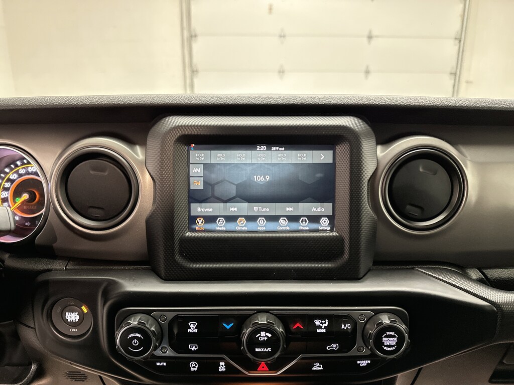 Inside, technology keeps everything simple and connected. The Uconnect system with a 7-inch touchscreen supports Apple CarPlay and Android Auto, so your navigation, music, and messages stay right where you want them. Bluetooth connectivity, steering wheel audio controls, and a built-in WiFi hotspot help make daily drives and road trips more enjoyable. On colder mornings, the hard top with rear window defroster adds comfort and convenience, while deep-tint windows keep the cabin cool and private when the sun is out.