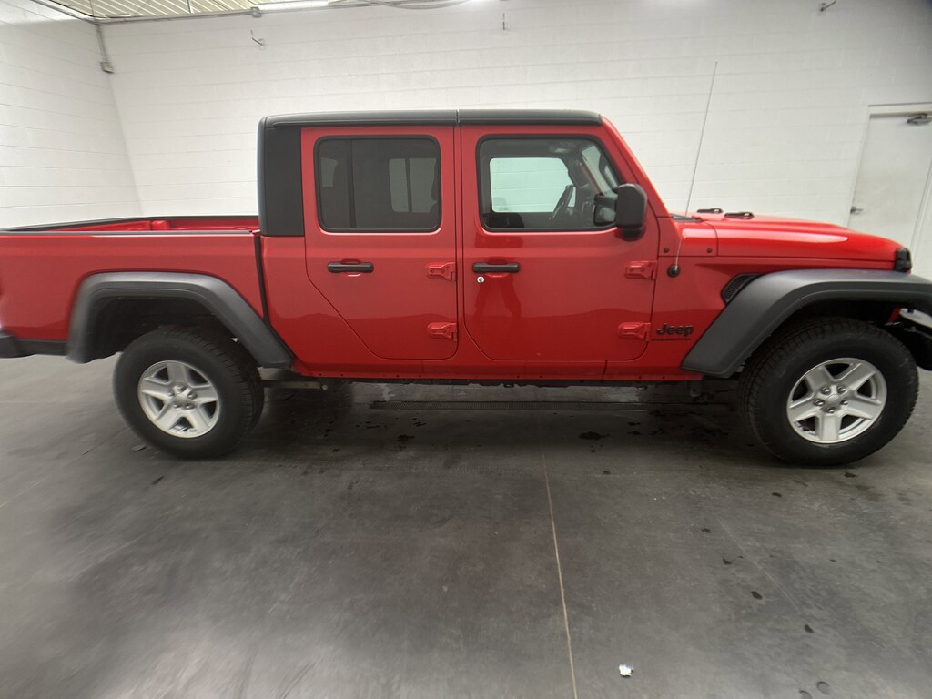 Weâve just taken in a 2023 Jeep Gladiator Sport S Crew Cab Pickup - itâs finished in Firecracker Red Clearcoat, with a Black cloth interior. This Gladiator shows 60,354 miles and is powered by a 3.6L V6 gasoline engine paired with an 8-Speed Automatic transmission and part-time 4WD, delivering confident capability with an EPA-estimated 17 MPG city and 22 MPG highway.