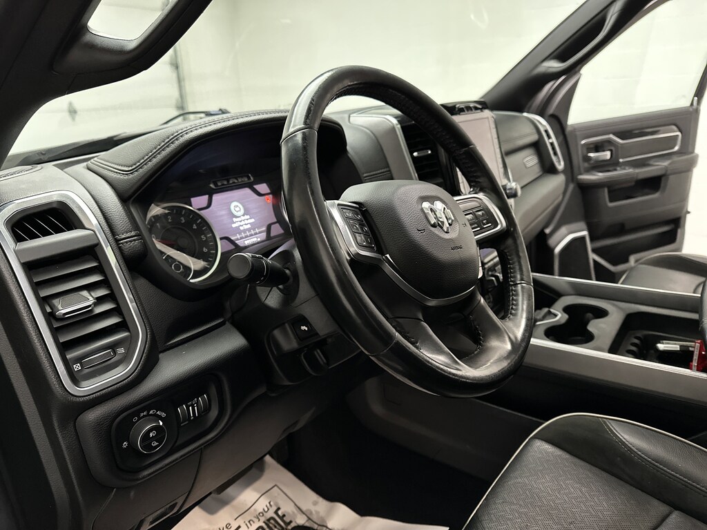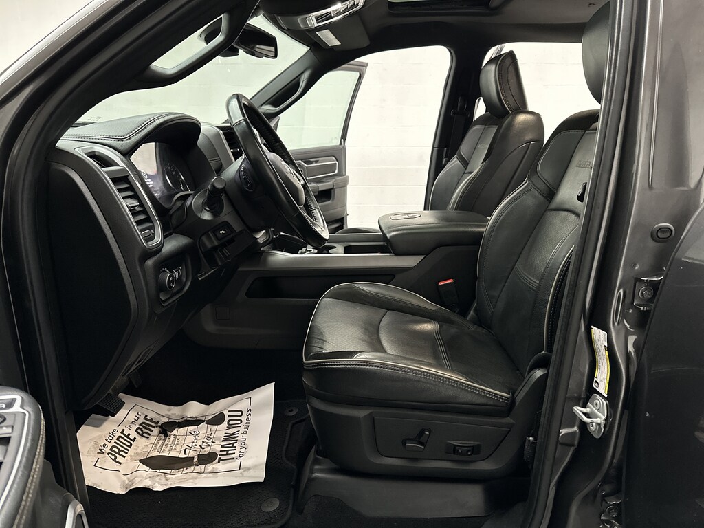 Climb inside and you'll immediately notice this is not a stripped-down work truck. The Laramie Level A Equipment Group surrounds you in comfort. Black leather-trimmed bucket seats offer both heating and ventilation, so you stay warm on freezing mornings and cool during summer job sites. The heated steering wheel takes the edge off cold starts. Power-adjustable pedals, driver seat, mirrors, and memory settings tailor the truck perfectly to you every time you get in.