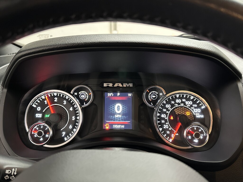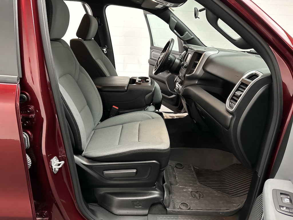 Inside, the thoughtful touches continue: one-touch power front windows, a tilt/telescoping steering column, and a clean, ergonomic layout give the Big Horn a premium yet practical feel. The Ram Clean Air System ensures every breath inside is fresh, while the 6-speaker audio system and SiriusXM Guardian connectivity keep you informed and entertained. The cabin is designed for real life ample storage, durable materials, and underseat bins make it as functional as it is inviting.