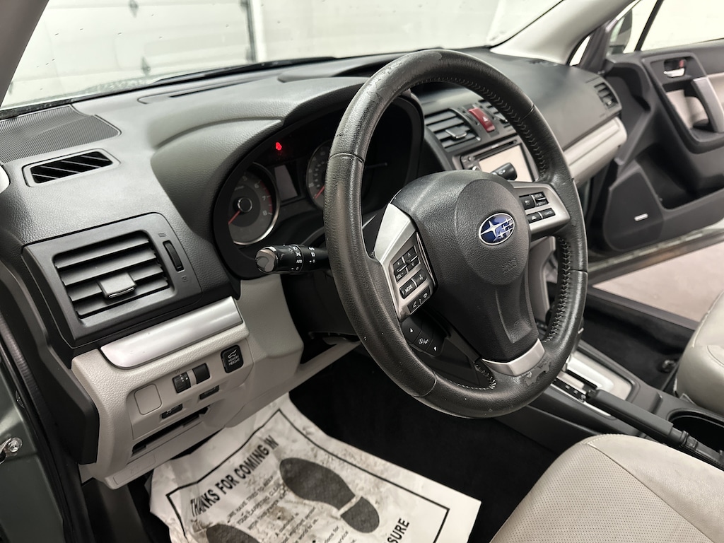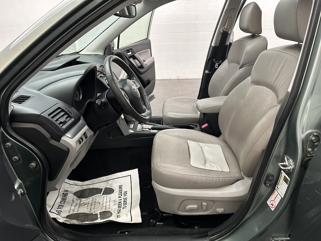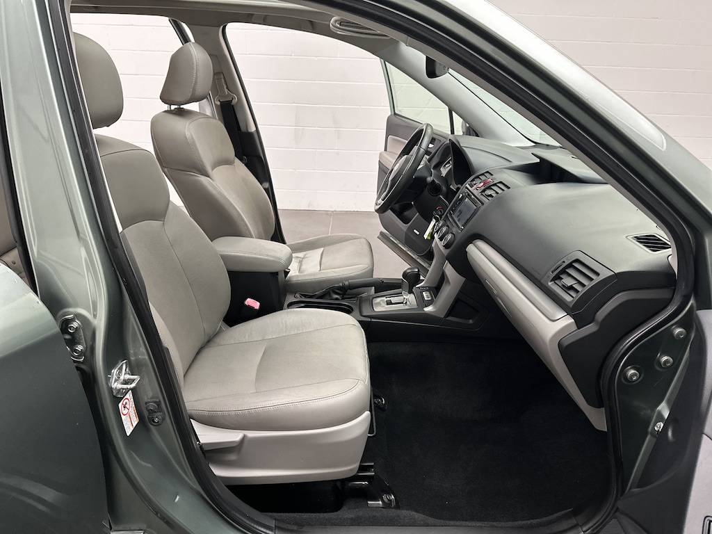 From the moment you slide into the plush leather-trimmed driverâs seat and press start, the cabin surrounds you with thoughtful design and comfort. The power-adjustable driverâs seat with lumbar support and heated front seats make cold mornings far more inviting, while the large panoramic moonroof fills the cabin with natural light. This Forester offers a bright, airy interior that feels spacious yet cozy perfect for long drives, weekend getaways, or daily errands.