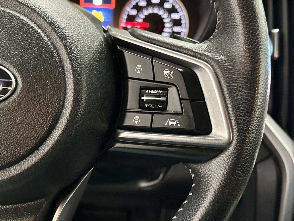 Slide into the driver's seat and you immediately feel how open and comfortable the cabin is. The elevated driving position gives a commanding view, while the intuitive controls and leather-wrapped steering wheel add a touch of refinement. Daily drives feel effortless thanks to Subaru's EyeSight driver assist system, which includes adaptive cruise control that glides through traffic, lane keep assist that gently supports you on long highway stretches, and pre-collision braking for added safety in busy environments.