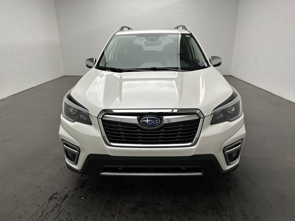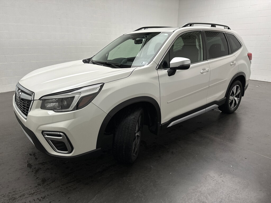 We have on the lot a 2021 Subaru Forester Touring SUV finished in Crystal White Pearl with a Black leather interior. With 100,827 miles, just one previous owner, and a clean accident-free history, this Forester is in Good condition. In spite of its mileage, it remains a feature-packed SUV that blends capability, comfort, and advanced safety technology.