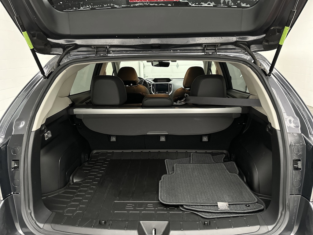 On the outside, the Crosstrekâs sporty stance is enhanced by 18-inch black/silver alloy wheels with a machine finish, LED steering-responsive headlights, fog lights, and a sleek rear spoiler. The power moonroof lets in fresh air and sunlight, perfect for scenic drives or just enjoying a nice day. Practical touches like the cargo net, cargo cover, and flexible rear seats make it easy to haul gear, groceries, or weekend adventure essentials.