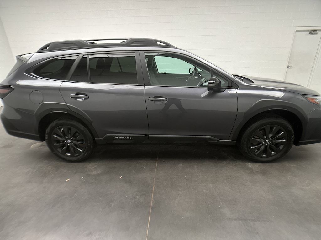 From the outside, the Onyx Edition XT stands out with its black 18-inch aluminum alloy wheels, bold black grille, roof rails, LED lighting, and rugged design details that give it a strong, athletic stance. The Magnetite Gray Metallic paint shimmers in the light, projecting sophistication with a touch of adventure. Whether youâre heading into the city, the mountains, or anywhere in between, this Outback Onyx Edition XT is built to make every trip feel effortless, refined, and ready for anything.