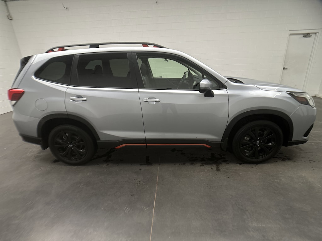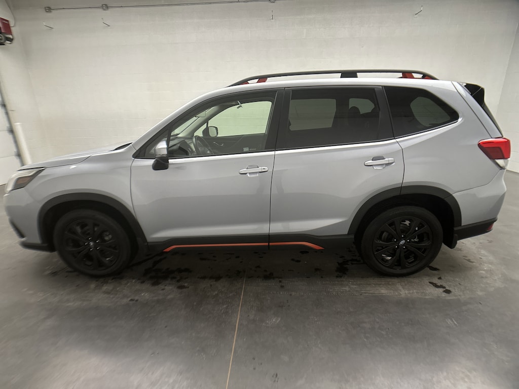 We've just taken in a 2024 Subaru Forester Sport SUV - it's finished in Ice Silver Metallic, with a Gray Sport Cloth interior with bold orange stitching. It currently has JUST 17,445 miles and is powered by a 2.5L 4-cylinder gasoline engine paired with a smooth 7-Speed CVT and Subaru's legendary Symmetrical All-Wheel Drive. This 1-owner Forester comes with 0 accidents on its history, is in Very Good condition, and still carries remaining factory bumper-to-bumper warranty for added peace of mind.