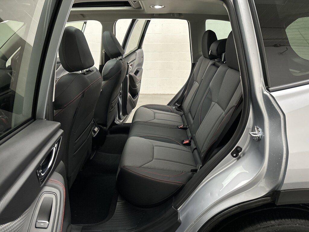 A power rear gate makes loading groceries, sports gear, or camping equipment effortless, and the 60/40 split-folding rear seats open up flexible cargo space in seconds. Roof rails with orange accents are ready for bikes, kayaks, or a cargo box. Smart key access with push-button start means the Forester is ready when you are.