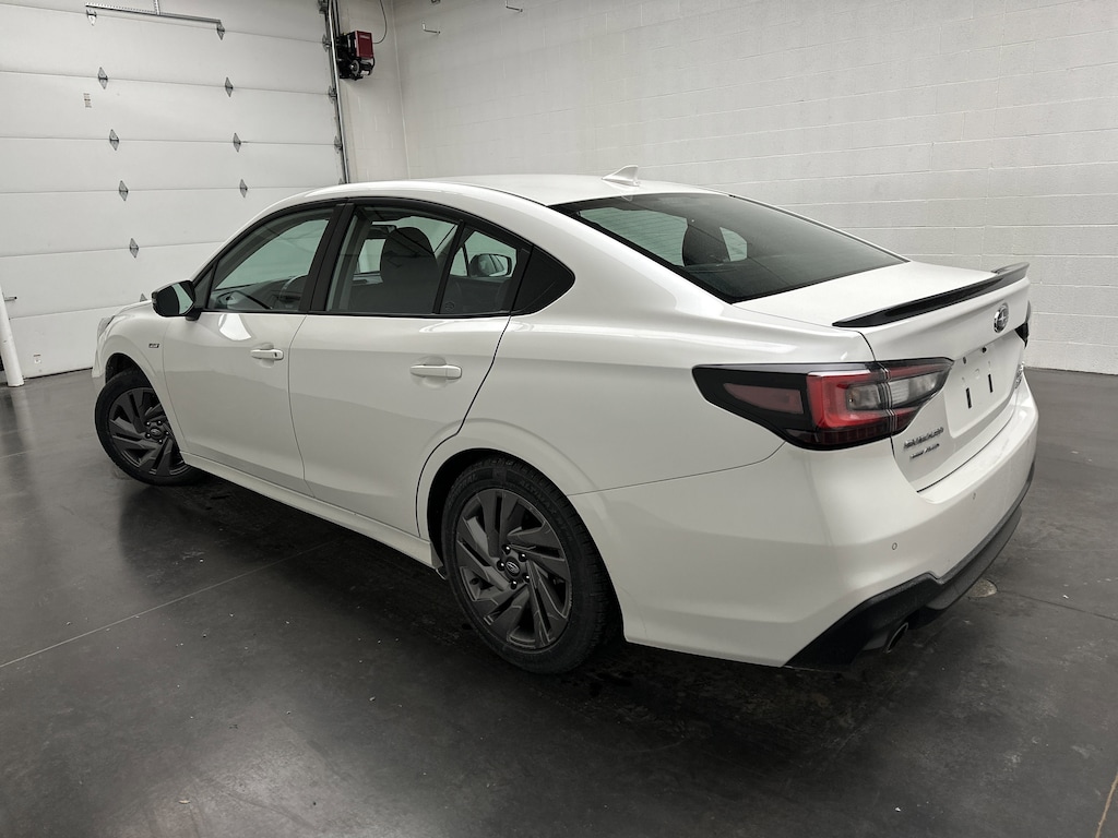 We've just taken in a 2024 Subaru Legacy Sport Sedan - it's finished in Crystal White Pearl, with a sharp Two-Tone Black/Gray cloth interior accented by red stitching.