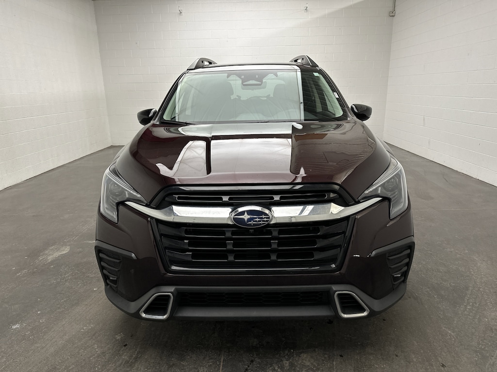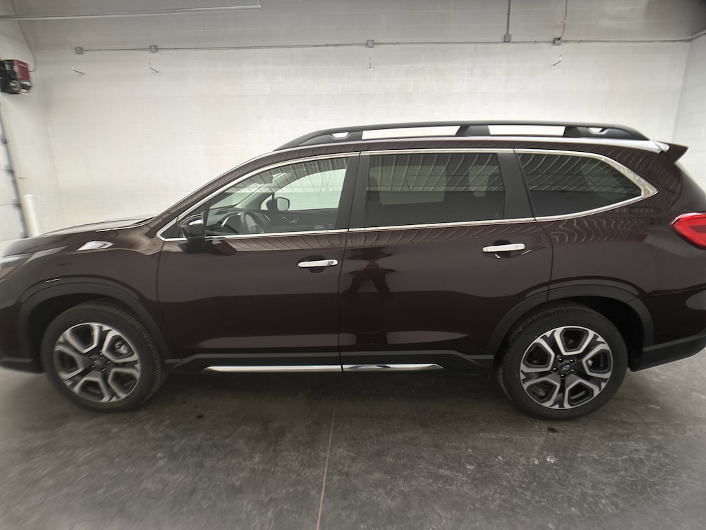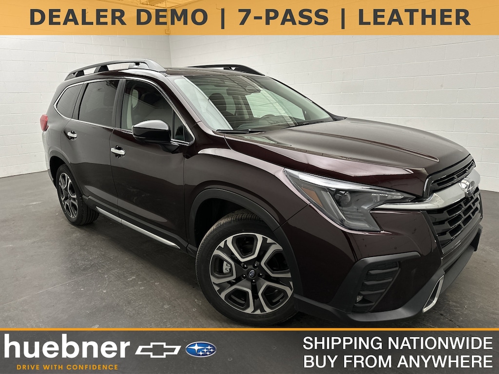 We have on our lot a FAMILY-READY 2025 Subaru Ascent Touring SUV - It's finished in Dark Mahogany Pearl, with a Java Brown perforated Nappa leather interior. It currently has JUST 3,940 miles, is powered by a turbocharged 2.4L Intercooled Turbo H-4 engine running on gasoline, paired with an 8-Speed CVT with overdrive, and features Subaru's Symmetrical All-Wheel Drive. It delivers an EPA-estimated 19 MPG city and 25 MPG highway.