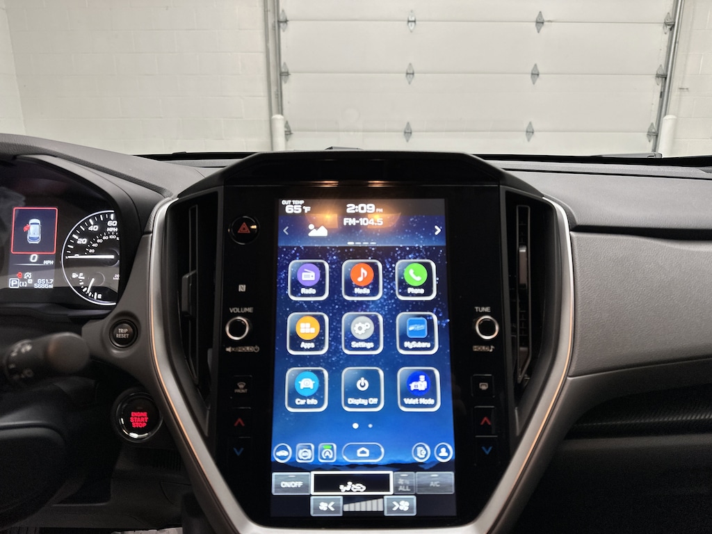 Inside, the cabin is bright, modern, and thoughtfully designed. The massive 11.6-inch Subaru Multimedia Plus touchscreen becomes the command center for your drive, offering wireless Apple CarPlay and Android Auto so your apps, navigation, and music are always right where you want them. Dual-zone automatic climate control keeps everyone comfortable, and the cloth seating is supportive and breathable for long drives. Keyless access with push-button start adds everyday convenience, while multiple USB-A and USB-C ports keep devices charged for everyone on board.