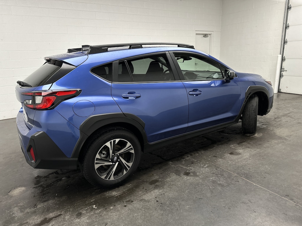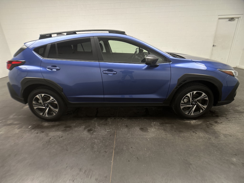 We have for sale on our lot a 2025 Subaru Crosstrek Premium SUV service loaner. It's finished in Daybreak Blue Pearl, with a Black cloth interior. This Crosstrek currently has just 5,611 miles and is powered by a fuel-efficient 2.5L 4-cylinder gasoline engine paired with an 8-speed CVT and Subaru's legendary Symmetrical All-Wheel Drive. EPA estimates come in at 27 MPG city and 33 MPG highway, making it an easy choice for daily commuting, weekend trips, and everything in between.