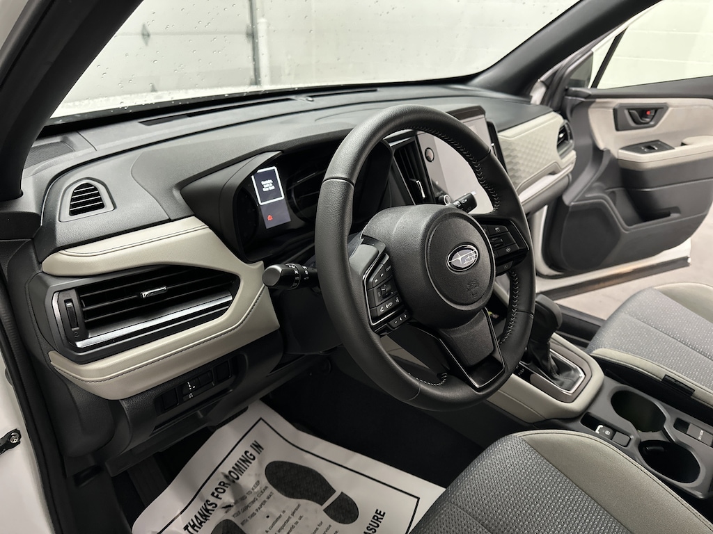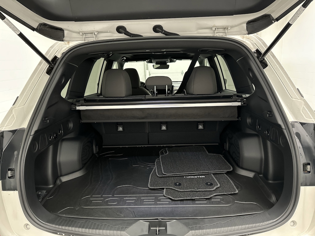 Every detail of this Forester is thoughtfully engineered for versatility. The X-MODE traction management system and 8.7 inches of ground clearance let you tackle muddy trails or snowy driveways without hesitation. Fold down the 60/40-split rear seats, and youâve got a wide, flat cargo area that easily fits camping gear, bikes, or a full grocery haul. With the added Convenience Package, you also get an Auto-Dimming Mirror with Compass and HomeLink, all-weather floor liners, and a cargo tray to help protect your interior during every adventure.
