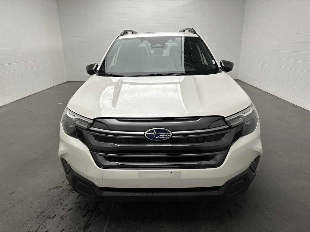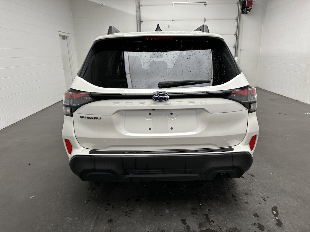 On the outside, its Crystal White Pearl paint gleams with sophistication, complemented by 17-inch dark metallic alloy wheels and roof rails ready for your kayak or cargo box. The Foresterâs design is practical yet modern built for those who spend their weekdays commuting and their weekends exploring.