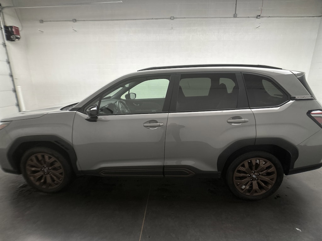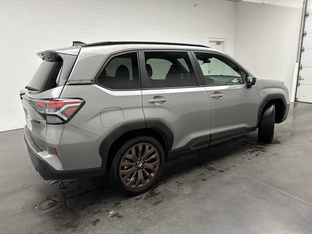 We have on the lot a 2025 Subaru Forester Sport SUV DEALER DEMO. It's finished in River Rock Pearl with a Gray StarTex interior accented in bronze stitching. It has ONLY 9,551 miles, runs a 2.5L 4-cylinder Subaru Boxer engine on gasoline, and uses the 8-speed Lineartronic CVT with AWD.